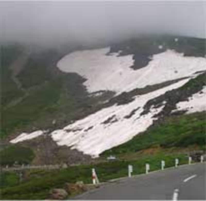 | 乗鞍岳エコーラインの道沿いには所々に雪渓が残っていた |