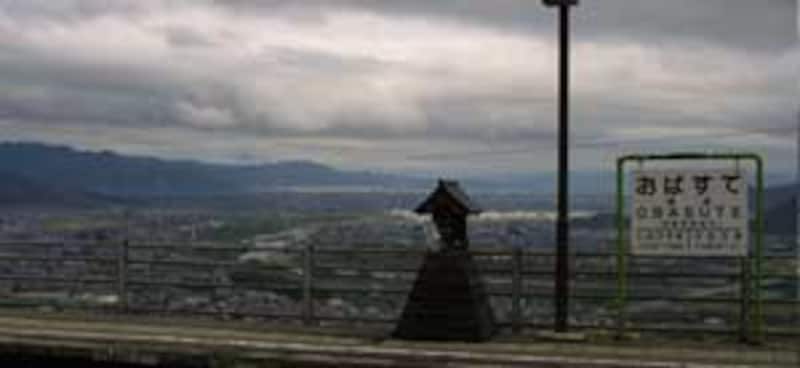 この駅からの景観は、旧国鉄三大車窓(※)の一つに選ばれた程の景観です。眼下に千曲川、左手に善光寺平が、右手に棚田の風景が展望出来ます。