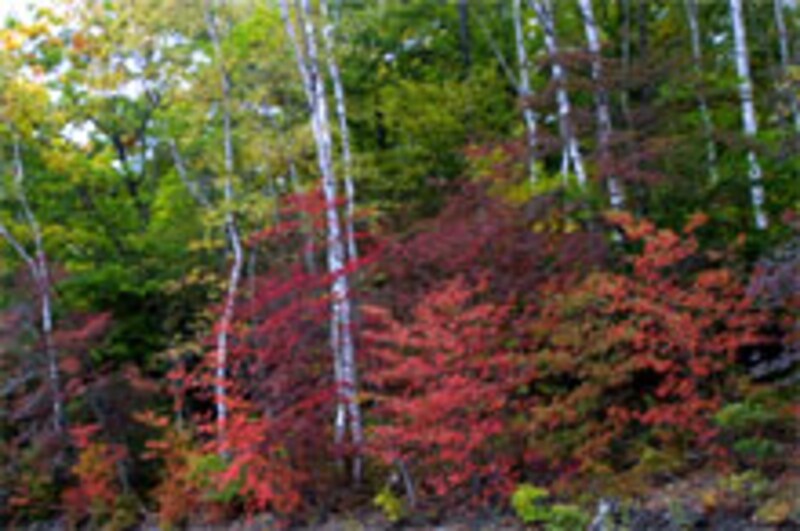 | 白樺林の中でドウダンツツジ色づく(八ヶ嶺橋付近) |