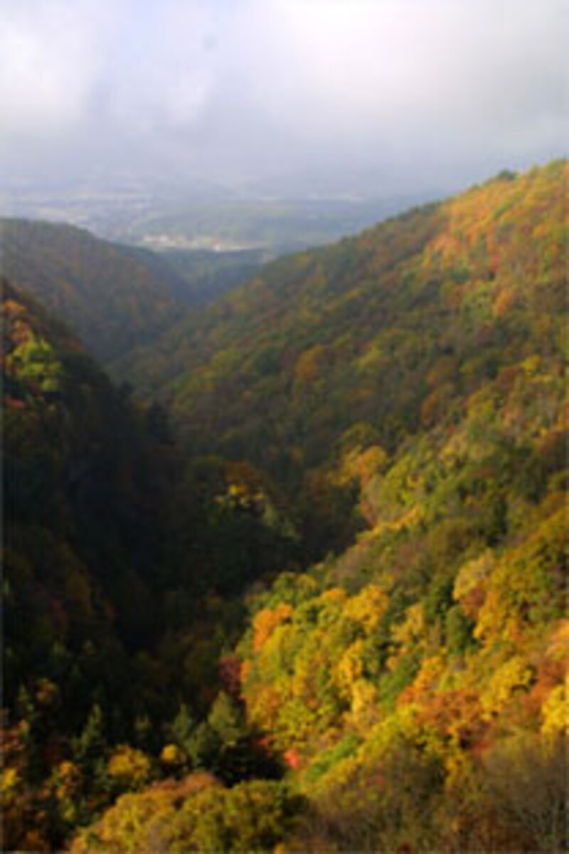絶景!王滝とその紅葉 王滝の紅葉・撮影:2005年10月30日、9:37:18王滝の紅葉・撮影:2002年10月19日 右の二枚の写真は、共に横谷観音の展望台から撮った「横谷渓谷・王滝の紅葉」の風景だが、下は、ハンドル名「岡谷の自由人」さんが3年前に、上は、私が今年訪れた時に撮ったものだ。 比較して見ると明らかにその紅葉度の差が歴然としているのだが、これは今年は ◎ 時期の差:例年より1週間から10日遅れ ◎ 気象条件:夏雨が少なく色づきが悪い ことによると思われる。が、多少見頃を過ぎたとはいえ、はじめて訪れたので、充分に綺麗な紅葉を堪能できたのではないかと思っている。 北八ヶ岳の茅野市・蓼科側は、カラマツ林が多いので、黄色一色の紅葉となるのだが、横谷観音の展望台から見る紅葉は、 王滝の周りや山にある木々が、色々な種類があって、様々な色に変化する。文字通り「錦彩なす紅葉」になっているので、ことのほか綺麗に見える。 横谷観音の展望台は、メルヘン街道(国道299号線)の横谷観音の入口にある駐車場から徒歩でおよそ5分のところにある。晴れていると南アルプス連峰が見えるというのだが、あいにく私が行った日は雲の中だったのは心残りだった。 横谷観音堂展望台から王滝を見る・撮影:2005年10月30日 9:47:40 横谷観音堂展望台からの景色・撮影:2005年10月30日、9:47:48 ●アクセス ◎ 車 :中央道諏訪インターから ◎ バス:JR)茅野駅~蓼科中央高原・往復(時刻表) ◎ 地図:Yahoo!地図情報 - 長野県茅野市北山の横谷渓谷周辺地図 《関連サイト》: ・信州の紅葉情報・紅葉の名所情報 ・信州秘湯会 奥蓼科・明治旅館 ・蓼科中央高原観光協会 ・制作:05/11/06・更新:06/10/07 前のページへ12※記事内容は執筆時点のものです。最新の内容をご確認ください。