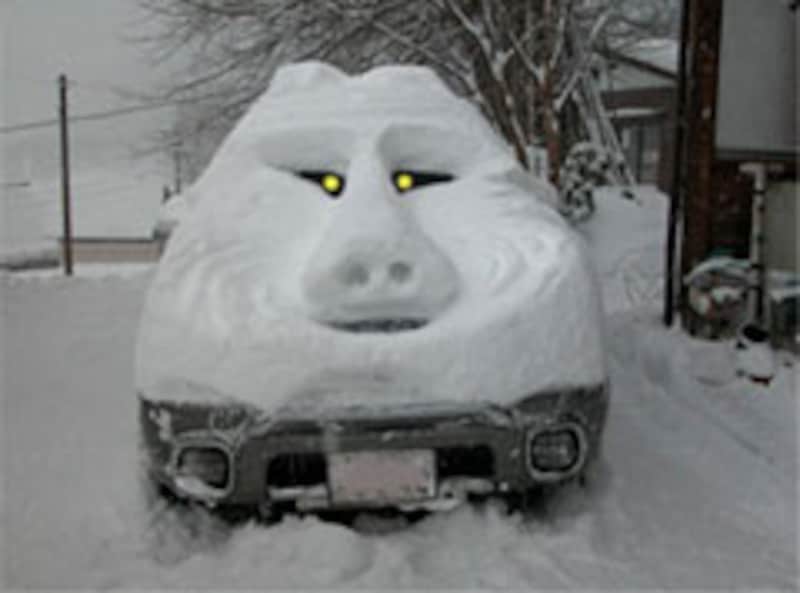 | 自家用車を使った雪像・信濃平観光協会提供 |