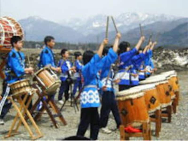 | 迫力がある飯森水神太鼓・白馬五竜観光協会提供 |