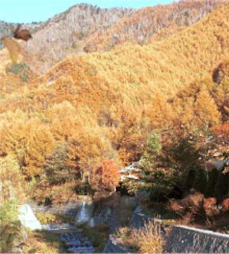 | 乗鞍高原の10月下旬の落葉松林の紅葉 |