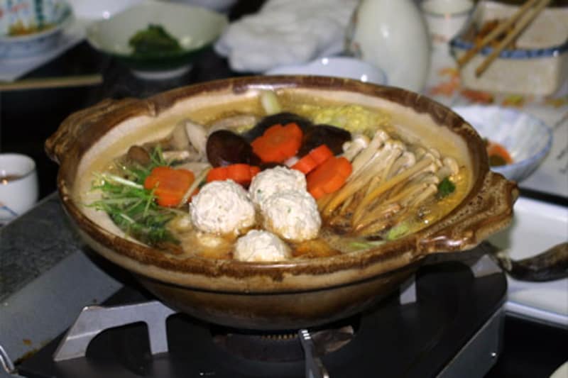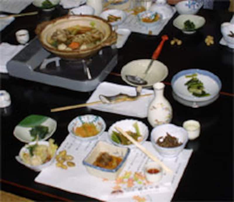 お庚申様料理は精進料理だから、普通は生き物は無いのだが、 蛋白質がとれる岩魚の塩焼や 鶏団子のお鍋もあった。