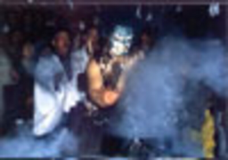 猿面をつけた面踊り