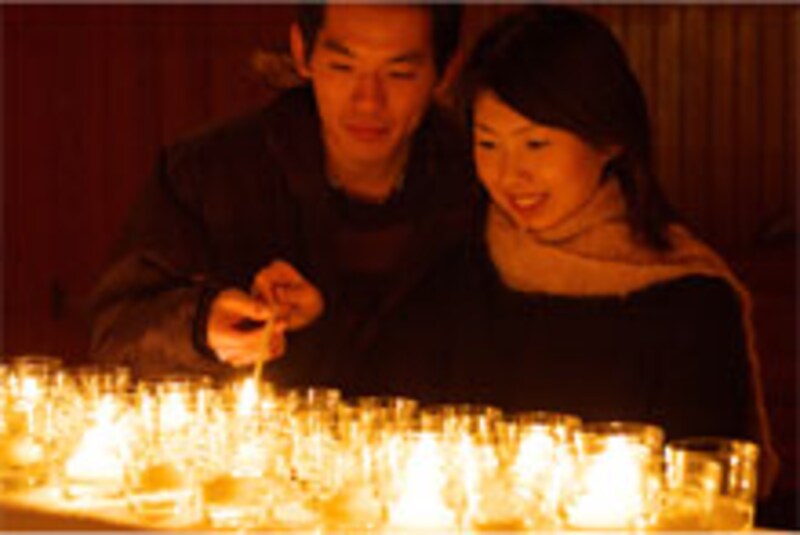 散策の後は、教会内でアドヴェントキャンドルを灯します。 キャンドルに祈りを込めて献灯し、神聖な一時が過ごせます。
