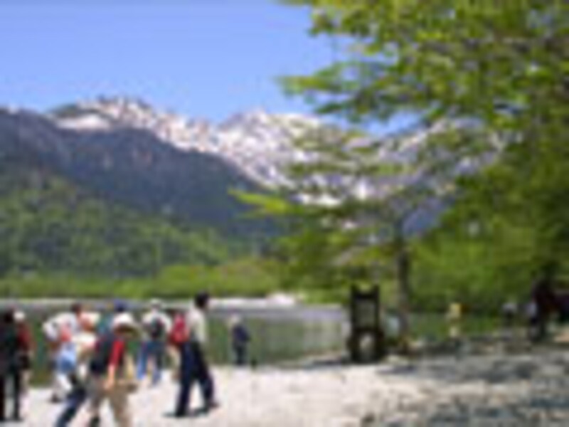 大正池は、上高地を訪れる人は、誰もが1度は行く定番コースです。焼岳の大噴火でせき止められてた池には、少なくなっていますが、湖面の枯れ木も未だ健在です。