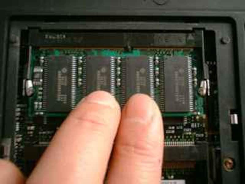 ノートパソコンの裏側の場合は電源を切って、本体をひっくり返してメモリスロットの蓋をあけてメモリを差し込み、蓋を締めるだけです。