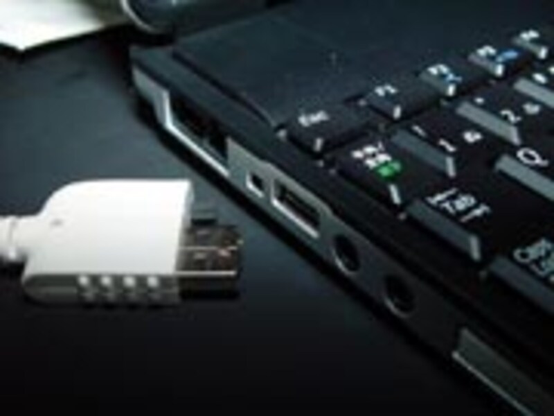 光学ドライブは内蔵されていないが、必要なときはUSB接続などで簡単に取り付けは可能。だが光学ドライブは電力消費が多く、ACアダプタが必要なことが多い。そんなこともあり、各パソコンメーカーは独自に電源用のコネクタをノートパソコンに装備している。NECにもACアダプタを必要としない光学ドライブをオプションで用意している。