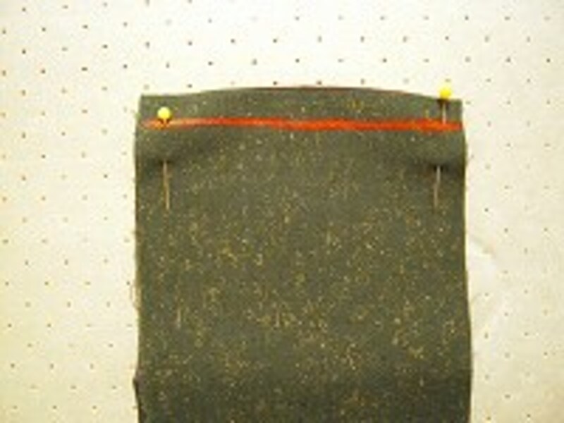 2枚の布を、中表に合わせます。合わせた箇所の内側1センチほど(画像の赤線)を縫い合わせます。
