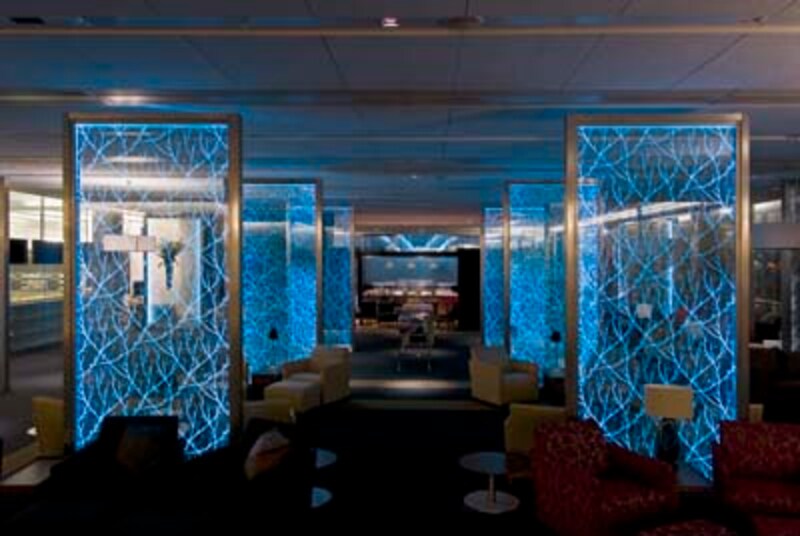 ファーストクラス・ラウンジに設置されている、3組の繊細な3Dレーザー・エッチングガラスパネルです。デジタルデザインのパイオニアとして世界に知られるクリストファー・ピアソンが制作しました。イギリスのオークの木が成長する様子が描かれ、四季をモチーフに取り入れた、幻想的な空間です。