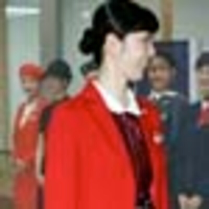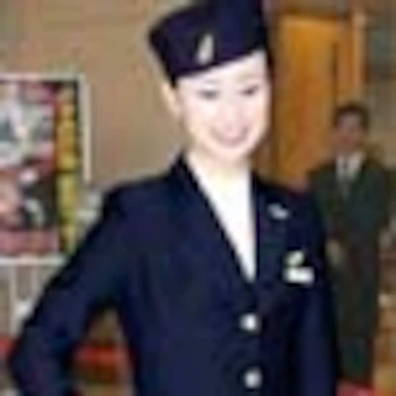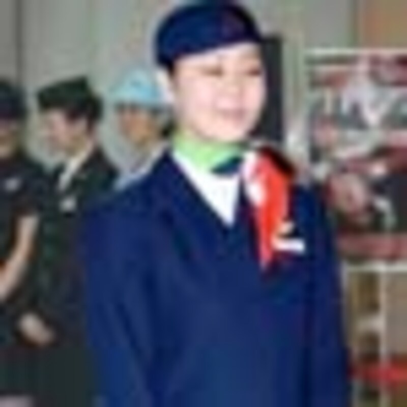 ソウルでは、86年のアジア競技大会、88年のオリンピックと国際スポーツ大会を相次いで開催。海外旅行も自由化されるなど、韓国社会の国際化が急激に進んだ時代のユニフォームがこの9代目です。デザインは初めて海外のデザイナーに依頼し、米国のジョイス・ディクソン氏が担当。ワンピースは七分袖にジッパースタイルで動きやすさを出し、赤色のジャケットを組み合わせました。燕尾服スタイルのジャケットが女性キャビンアテンダントのイメージを高めたほか、韓国の寺社などによく見られる伝統模様“丹青(タンチョン)”をモチーフにしたデザインがベルトに施され、“国際化”とともに“伝統”というキーワードも取り入れたユニフォームです。
