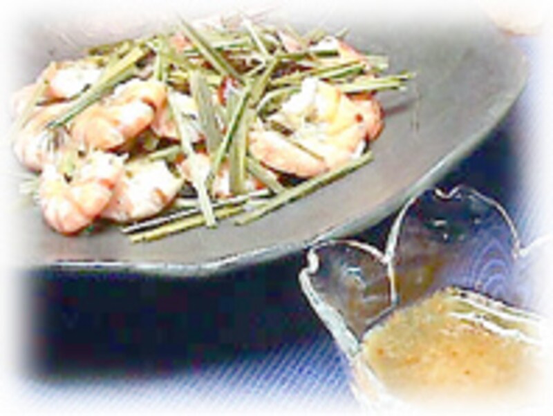 1)タレの材料をあわせておく。 2)えびは背わたをとっておく。殻の間からつまようじをさしこんで引き抜く。 3)耐熱皿にレモングラスを敷いてえびをのせ、上からもレモングラスをかけて、白ワインをふる。 4)ラップをかけて冷蔵庫でしばらくおき(できれば半日)レンジで4~5分蒸す。500ワットなら約4分。蒸し時間が長いと身がかたくなるので様子を見ながら。 5)食べるときは、えびの殻をむいて、1のタレにつけていただきます。 |