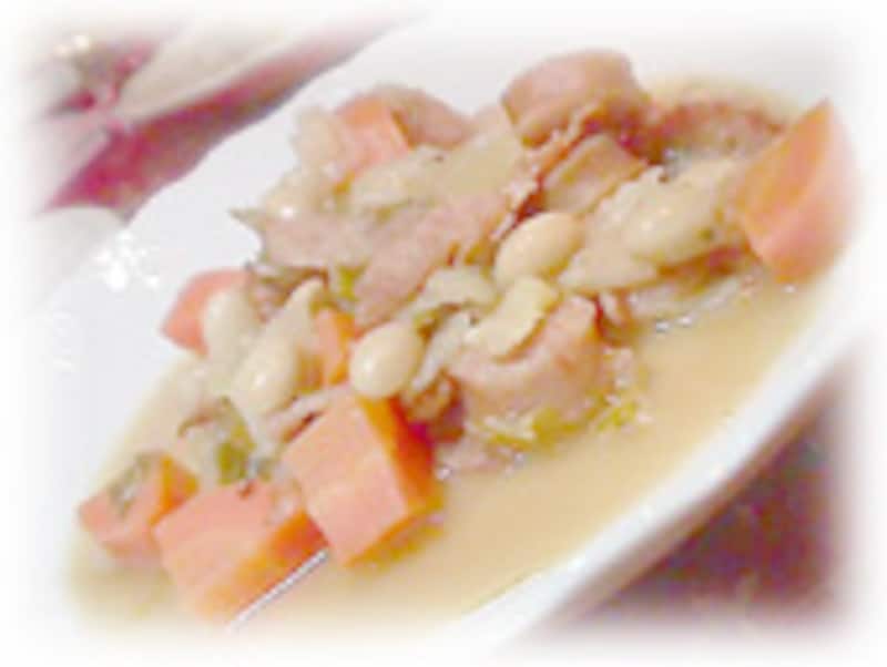 1)流水の下でハマグリをよく洗い、鍋にハマグリを入れ、蛤がやっと隠れるくらいの高さまで水を加える。ふたをして強火にし、沸騰したら30秒ほど鍋をゆする。 2)殻が全て開いたらハマグリをすべて取り出し、身をとりだしておく。こし器で漉して、鍋に残っているスープを約1カップ分に煮詰めて取っておく。 3)厚手の鍋にベーコンの千切りを入れて、脂分が出るまでじっくりと炒める。 4)鍋からベーコンだけを取り除き、残った脂でみじん切りの玉ねぎと1センチ角に切ったセロリとじゃがいもを炒め、しんなりしてきたらベーコンを戻す。小麦粉を振り入れ、取っておいたハマグリのスープを加える。弱火にし、5分ほど煮る。 5)鍋に牛乳と生クリームを注いで、煮立たせる。 6)1/4の大きさに刻んだハマグリの身、カイエンヌペッパー、塩と白こしょうで味を調え、さらに5分ほどふつふつと煮る。 7)スープ皿にバターを大さじ1/2ずつ入れ、上から熱いスープを注ぐ。 |