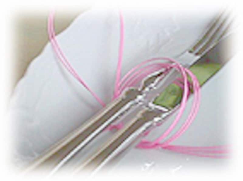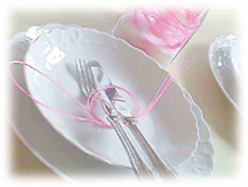 結び目の中にナイフとフォークを入れて皿に置きます。