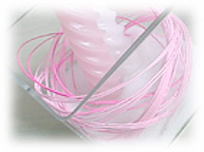 | 女雛の方には濃淡2色の水引をくるくるとまるめて無造作に入れ、 |