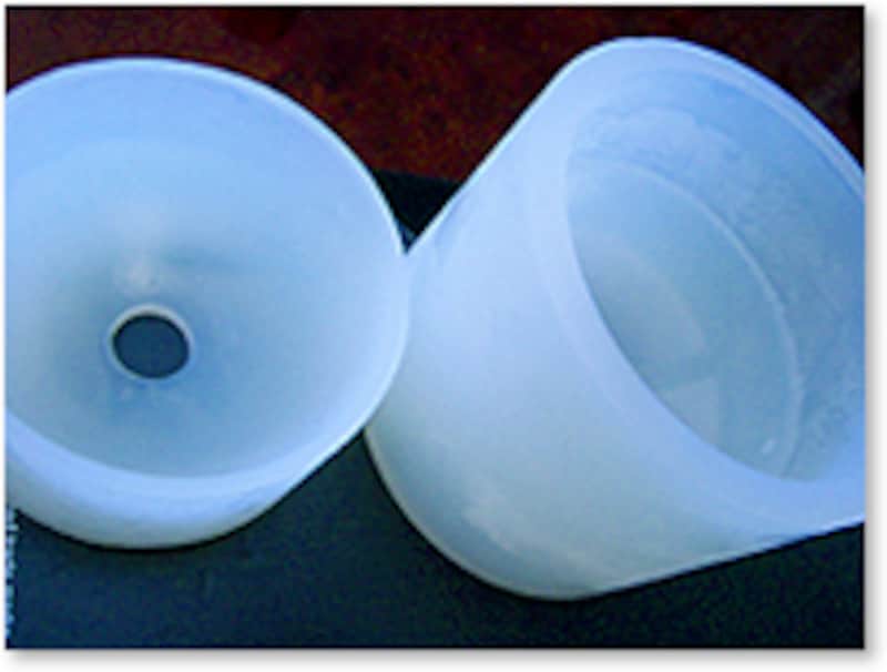 また、煮沸が面倒でつい使いたくなるミネラルウォーターですが、硬度の高い水(エビアンやコントレックスなど)は氷が白くなりやすいので、国産の軟水の方がより透明に仕上がるようです。 取り出す時は、上下のパーツを回しながらひねり、外しますが、シリコンが軟らかいので指で2つのパーツの間を押し広げると、簡単に取り出せます。 これからの季節、冷たい飲み物の他に料理の盛りつけにも活躍しそうな製氷皿、全国の無印良品、またはここ↓で買えます。