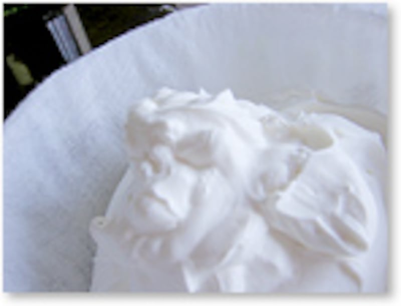 ホイップした生クリームとフレッシュチーズのフロマージュブランを混ぜ合わせたものがフォンテーヌブロー。ガーゼを敷いた小さな陶器に入って売られているデザートチーズです。食べる時は赤い実のソースをかけて食べるのが一般的。