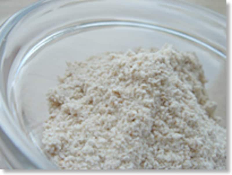 ●全粒粉は、胚乳、胚芽、外皮すべてを粉末にしてあるので、胚芽の部分には鉄分やビタミンB群、ビタミンE、ミネラル、そして外皮には不水溶性の食物繊維がとても豊富。小麦粉本来の恵みをまるごと摂取できるので、オススメの製菓材料です。最近は