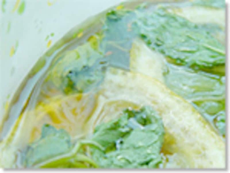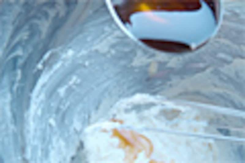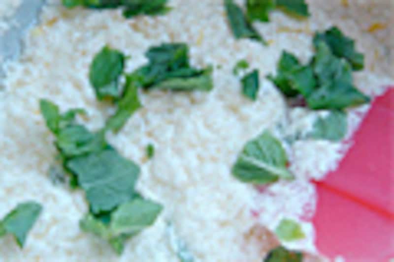 バター、小麦粉、砂糖が同量ずつのパウンドケーキ。分かりやすくて失敗が少なく、作りやすいのが特徴ですが、夏にいただくデザートとしてはバターの風味が少し重く感じます。 そこで、バターの半量をサワークリームに替え、お砂糖も減らしてレモンとミントを漬け込んだはちみつを甘みとして使いました。レモンはたっぷり1個分。皮も果汁も使います。 水分を多く含むしっとりとした生地なので、冷やしていただく夏のデザートにピッタリ。口に運んだ瞬間「!」と目の覚めるような酸味の秘密は焼き上がった後からふりかけるレモン汁。 レモン1個を薄くスライスし、洗って水気を拭き取ったミントひとつかみと一緒に密閉容器に入れます。上からはちみつをたっぷり注ぎ、全体がかぶるようにしておきます。冷蔵庫に一晩入れておけば、翌朝にはジュースが上がって来るので、そのまま炭酸や水で割って飲んだりお菓子に使ったりできるようになります。 ◆◆ 20cmのパウンド型1台 無塩バター…50g サワークリーム…50g グラニュー糖…80g 卵…2個 薄力粉…100g ベーキングパウダー…小さじ2/3 国産レモン…1個 レモンミントはちみつ…大さじ2 ミントの葉…ひとつかみ (1) バターとサワークリームをボウルに入れて室温に戻す。ベーキングパウダーと薄力粉を合わせてふるう。卵は室温に戻して分量の中からグラニュー糖大さじ3を加え、軽くふんわりするまで泡立てておく。(バターと合わせる時に分離するのを防ぐため必ず室温に)レモンをたわしで良く洗って皮を削って(またはすりおろして)おく。果汁は絞る。 (2) バターとサワークリームが室温になったら泡立て器で混ぜ、グラニュー糖を3回に分けて加え、よくすり混ぜる。白っぽくなってきたら1の卵を少しずつ加え、分離させないようにしっかりと泡立てる。 (3) レモンミントはちみつを加えてさらによく混ぜ、ゴムベラに持ち替えてふるっておいた粉類を入れ、底からすくい上げるようにしてさっくりと混ぜ合わせる。 (4) ミントを手でちぎりながら加え、レモンの皮、レモン汁の半量を入れてざっと混ぜる。(レモン汁の半量は仕上げに使います) (5) 型に生地を流し入れて冷蔵庫で30~1時間休ませる。オーブンを160度に予熱する。 (6) 予熱しておいたオーブンで30~35分焼く。竹串を刺してみて生っぽいものがついてこなければ焼き上がり。熱いうちに残りのレモン汁を全体にふりかけ、型に入れたまま冷ます。あら熱が取れたらラップでしっかりと包み、冷蔵庫で冷たく冷やす。  ̄ BGM for MINT Dessert この料理と一緒に聴きたいCD ̄ 小鳥に説教するアッシジの聖フランソワ (F.Liszt) ミントの香りを閉じこめた白桃のコンポート。 ミントソースを添えておもてなしデザート♪>> <<前へ 1 / 2 / 3 次へ>> 【編集部おすすめの購入サイト】Amazonで人気レシピの書籍をチェック!楽天市場で人気レシピの書籍をチェック!※記事内容は執筆時点のものです。最新の内容をご確認ください。※衛生面および保存状態に起因して食中毒や体調不良を引き起こす場合があります。必ず清潔な状態で、正しい方法で行い、なるべく早めにお召し上がりください。また、持ち運びの際は保存方法に注意してください。