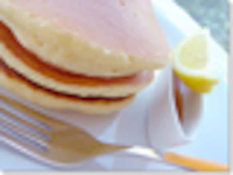 「子どものおやつみたい。」 本当にそうですか?? パンケーキとホットケーキの明確な違いを文章にすることは難しいのですが、生地の水分量による焼き上がりの厚みの違い、そしてどちらかと言えば使う粉や味付け、添えるものにバリエーションがあるのがパンケーキ、というイメージでしょうか。パンケーキにはふくらみの素であるベーキングパウダーを使わないことも多いようです。どちらにしても、フライパンで作る小麦粉と卵を使ったケーキという点では同じです。 ホットケーキは、子どものころのおやつの代表。母が焼いてくれる小麦粉と砂糖、卵と牛乳、そして溶かしバターを入れて作る手作りの(厚みはちょっとパンケーキのような)ホットケーキの焼ける甘い香り。はちみつの瓶とバターナイフを手に、焼き上がりをテーブルで待ちかまえている私。そういえば朝ごはんに登場することもありました。