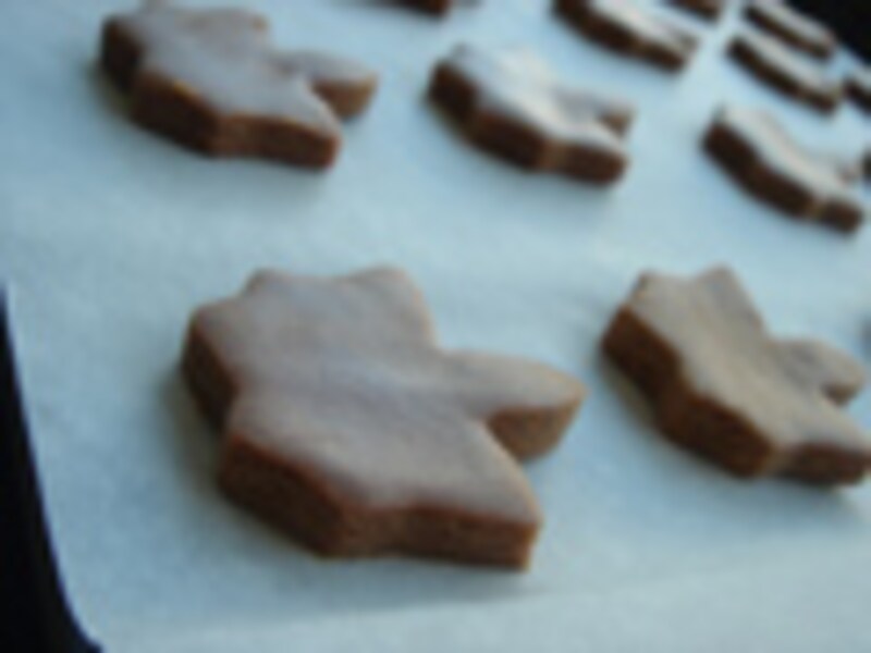 ◆サブレ・オランジュバターとチョコレートのリッチなサブレ。特に、甘いものが苦手な方のためのビターなレシピです。ハート型に抜けばバレンタイン仕様。でもここはあえて大人っぽいメープルリーフの形に抜きました。