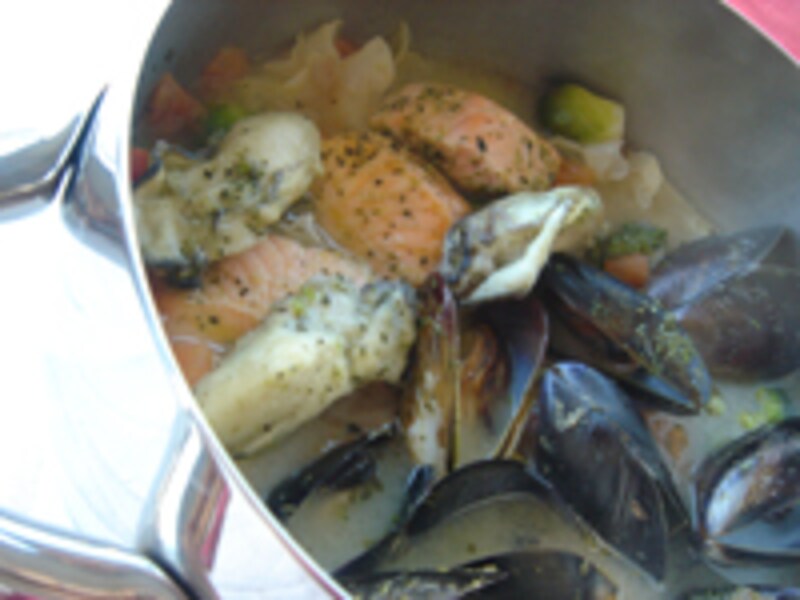 ![サーモンと牡蠣の和風ブイヤベース]() |