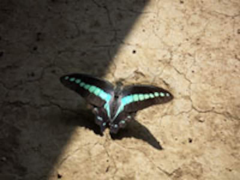 水辺に涼みにきたのか、アオスジクロアゲハを撮影。影と日向の境にいたものの破綻なく描写できている。 |