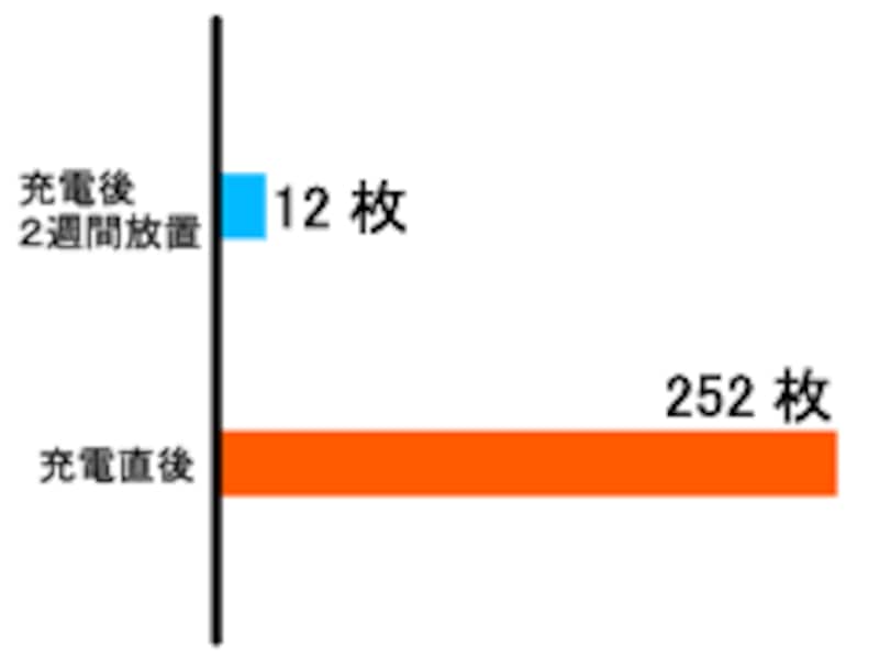 フル充電から2週間放置した電池で耐久テストに突入。なんとわずかに12枚で終了してしまった。
