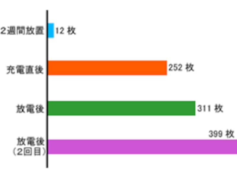 今回は399枚の撮影に成功した。最初のフル充電からは約58%増し、2回目の充放電からは28%増しという結果になったのである。