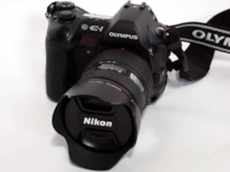 | このように筆者のE-1のレンズに装着されている。 |