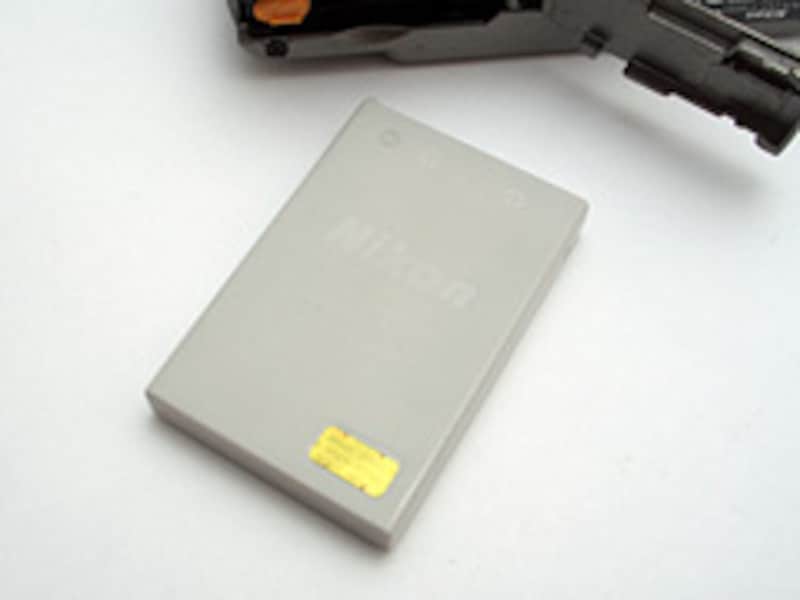| ▲バッテリーはかなり小型。偽造対策にホログラムが貼られている。 |