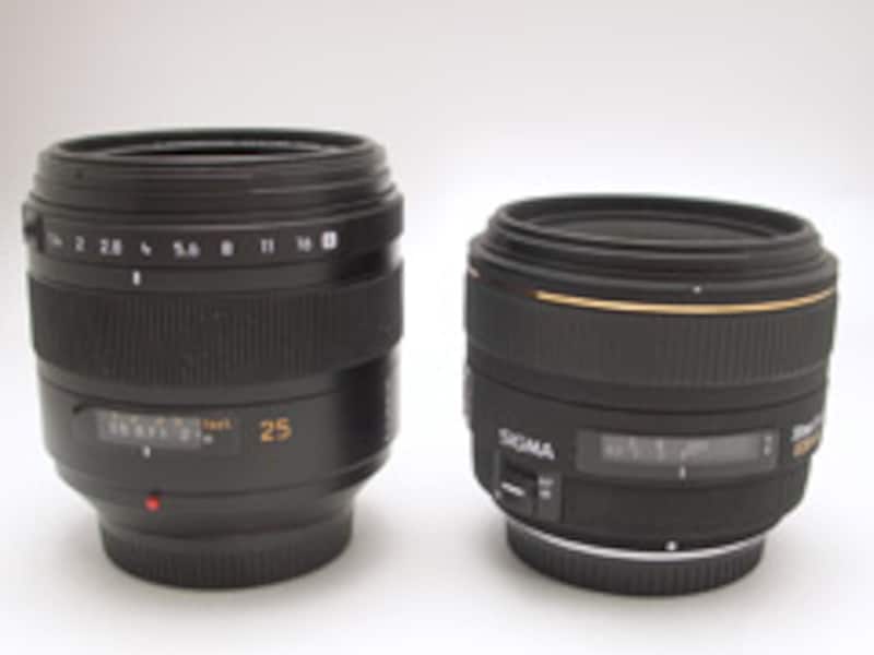 | ▲右はシグマ製のフォーサーズ用30mm F1.4 EX DC/HSM |