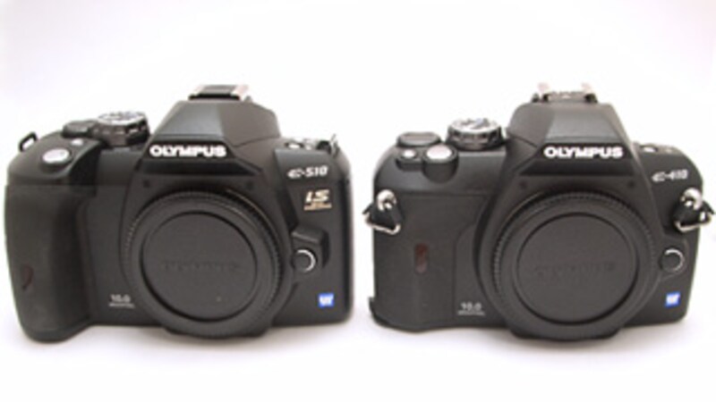 | ▲左がE-510、右がE-410。E-510のほうが一回り大きい。 |