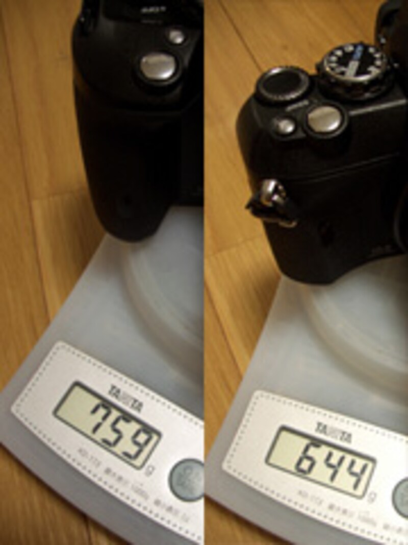 | ▲どちらも本体+バッテリー+標準ズームレンズ+メディア(xD)で計測。 |
