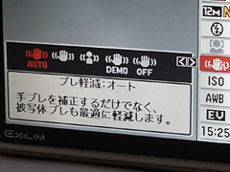 | ▲EX-Z1200の手ぶれ補正機構設定メニュー。 |