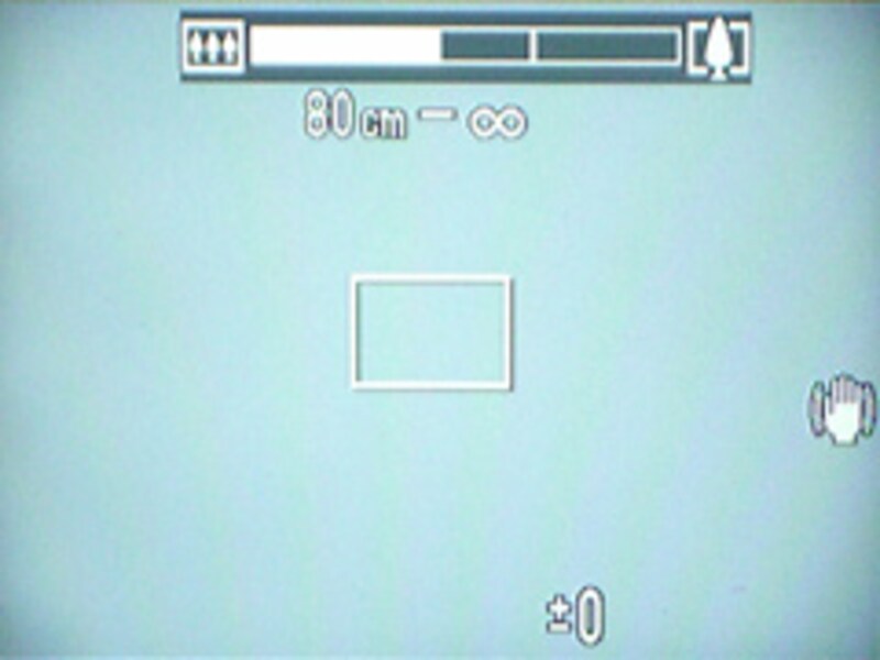 | ▲PowerShot SX100ISでズーム中の液晶ディスプレイ。最短撮影距離が表示されている。 |