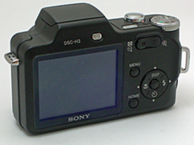 DSC-H3のボディの両側にはストラップ穴がある。これによって、首からかけて撮影するというスタイルがよりやりやすくなっている。