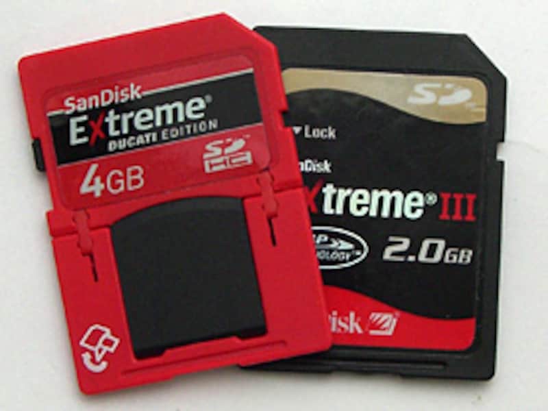 なお、アダプタに入れるSDカード、SDHCカードは最速レベルにあるサンディスクのExtremeIII(2GB/SDカード)、およびExtreme Ducatiエディション(4GB/SDHCカード)を利用している。