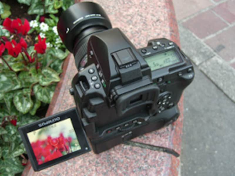 また、もうひとつE-3には特筆したい点がある。液晶ディスプレイがフリーアングルになっていることだ。