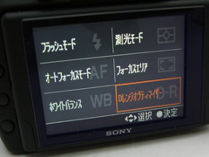 α100ではボディ左側にあったファンクションダイヤルは姿を消し、その多くは液晶ディスプレイ上での操作に変わっている。
