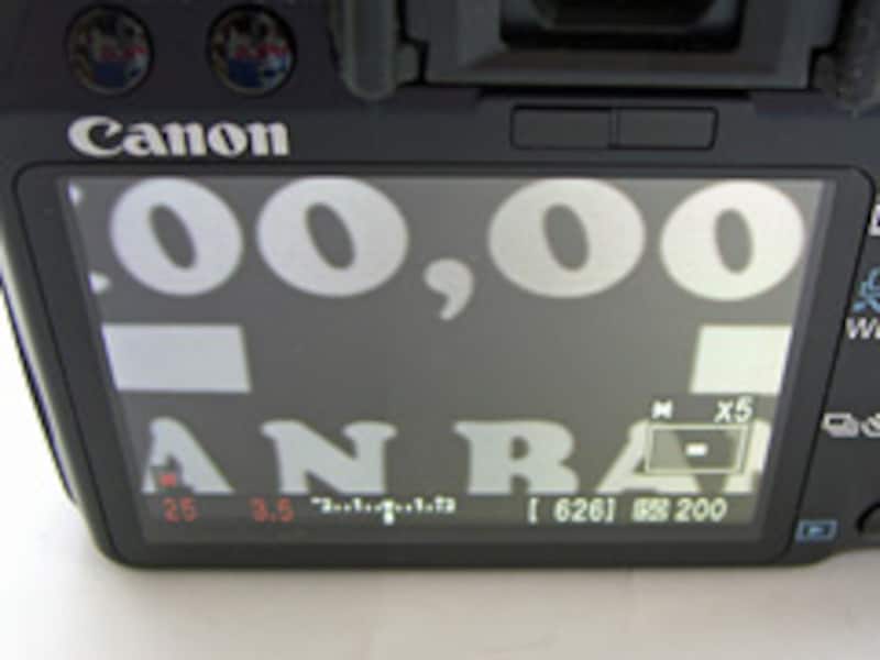 | ▲Kiss X2のライブビューで5倍表示させたところ。 |