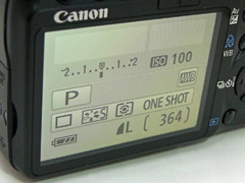 K200Dはメインの液晶ディスプレイに表示はしないが、その代わりにショルダー部分に別途ステータス表示用の液晶画面を搭載している。やや懐かしいスタイルだ。