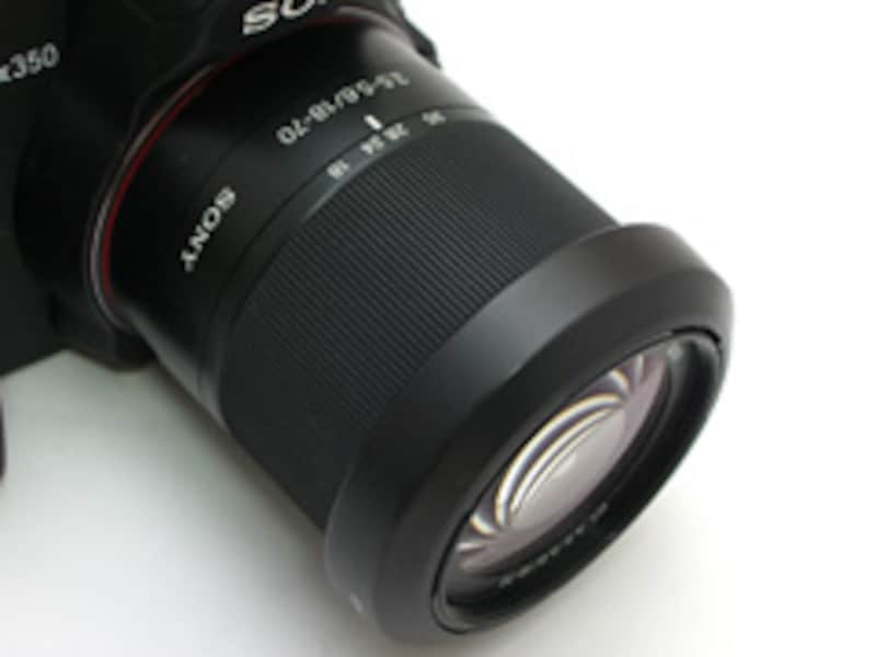 | ▲この標準ズームレンズは、α350をレビューした際にも気になったのだが……。 |