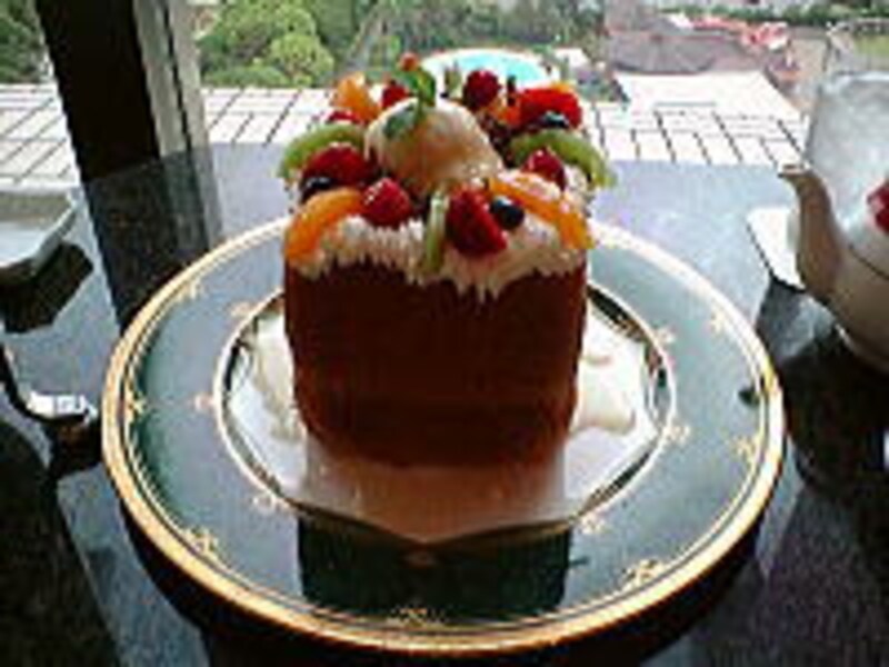 このアフタヌーンティーセットは、ティータイムの時間帯(月~金13:00~17:00、土・日・祝日9:00~17:00)限定。下段はサンドイッチにピクルスが添えられ、中段にスコーン(ブルーベリージャムとホイップクリームが添えられます)。上段はお好みのケーキで、数種類のサンプルを見せてくれるのでその中から選べます。飲物も、コーヒー・紅茶・フレッシュフルーツティーから選択。