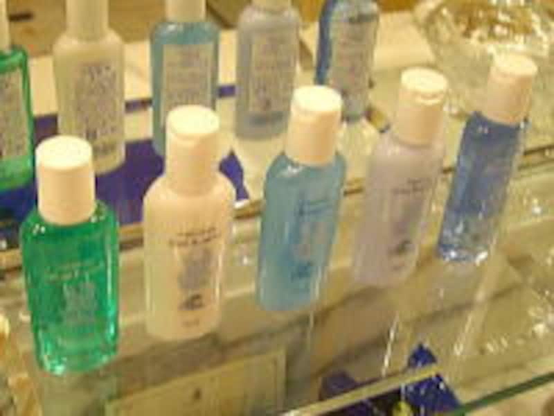 厚手のシャワーカーテンがオシャレなバスタブはゆったりサイズで、ホテルのロゴが入ったタオル地で包まれたバスピロー、お風呂上りにはバスローブも用意され、室内着はセパレートタイプの七分袖パジャマと至れり尽くせり。
