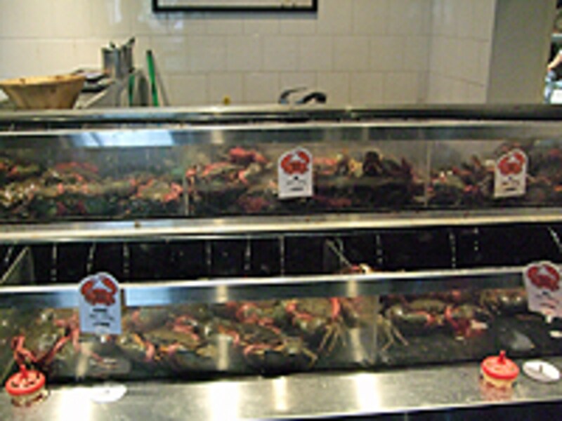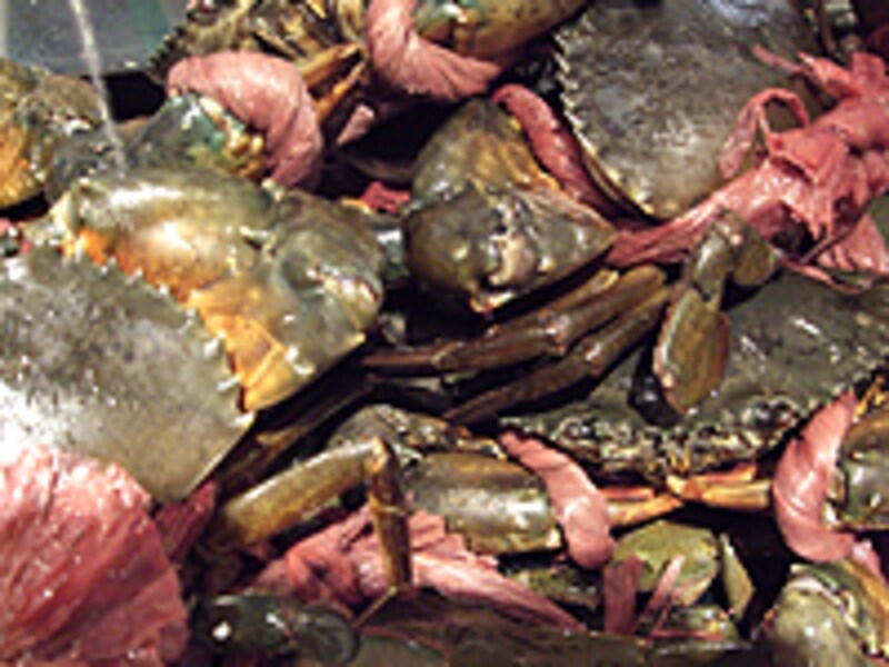 | 入り口すぐそばに並ぶ、マッドクラブ。500~590gのSサイズから1kgを越えるYOKOZUNAサイズまで |