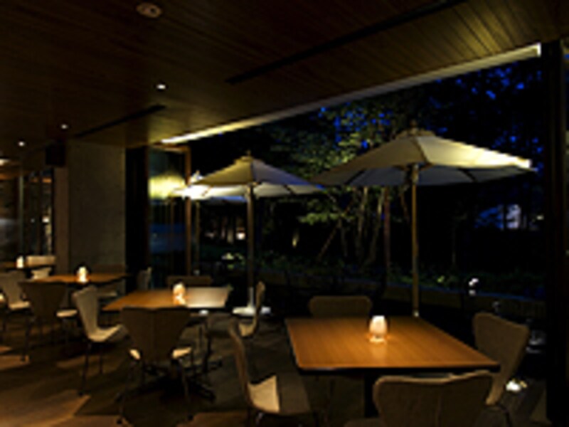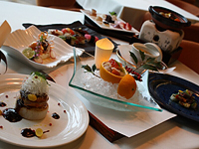 山くらげと菊の胡麻あえ、秋茄子と帆立の紅葉ドレッシング、地鶏のコラーゲン薬膳スープ、どれも料理人の技術と愛情が込められた逸品ばかり。6組ほどのゲストがテーブルを囲んでいるが、どのテーブルからも笑い声が絶えない。リゾートかくあるべしというシーンでもある。