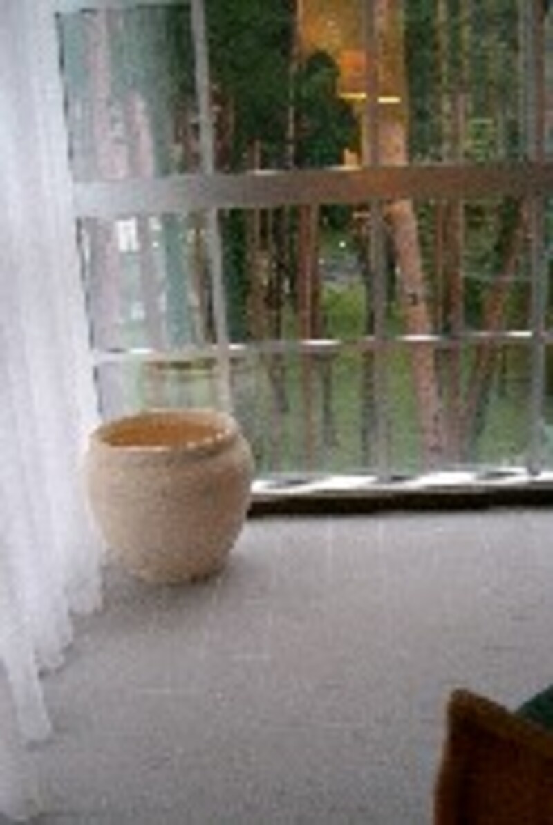 そして富士山こそ見えないものの、松林が爽快なサンルーム。サンルームには外に向かって籐のイスが置かれ、ゆっくりくつろげます。このホテルの周りの松林には、野生のリスも現れるとか。