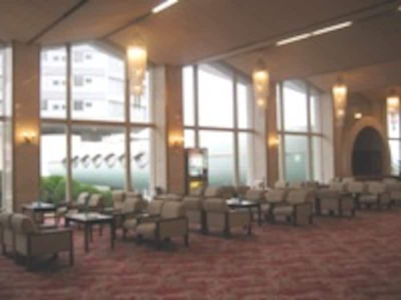 またロビーには、謎のトンネルが……。これは別館に続く連絡通路。窓の形もちょっと変わっていて水族館みたい。子供には大人気のスポットです。